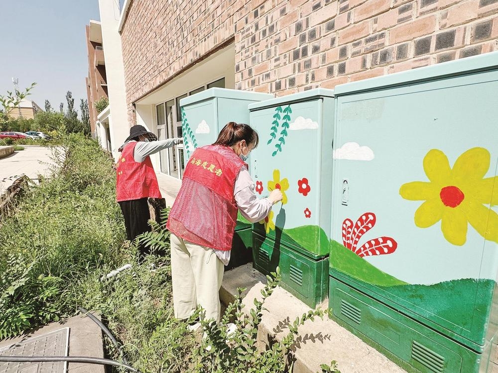连日来,乌达区新达街道爱民佳苑社区用创意彩绘扮靓嘉敏雅苑小区,墙面变身文明画廊,地面跳动着趣味标语,让小区环境变得有趣且温馨。