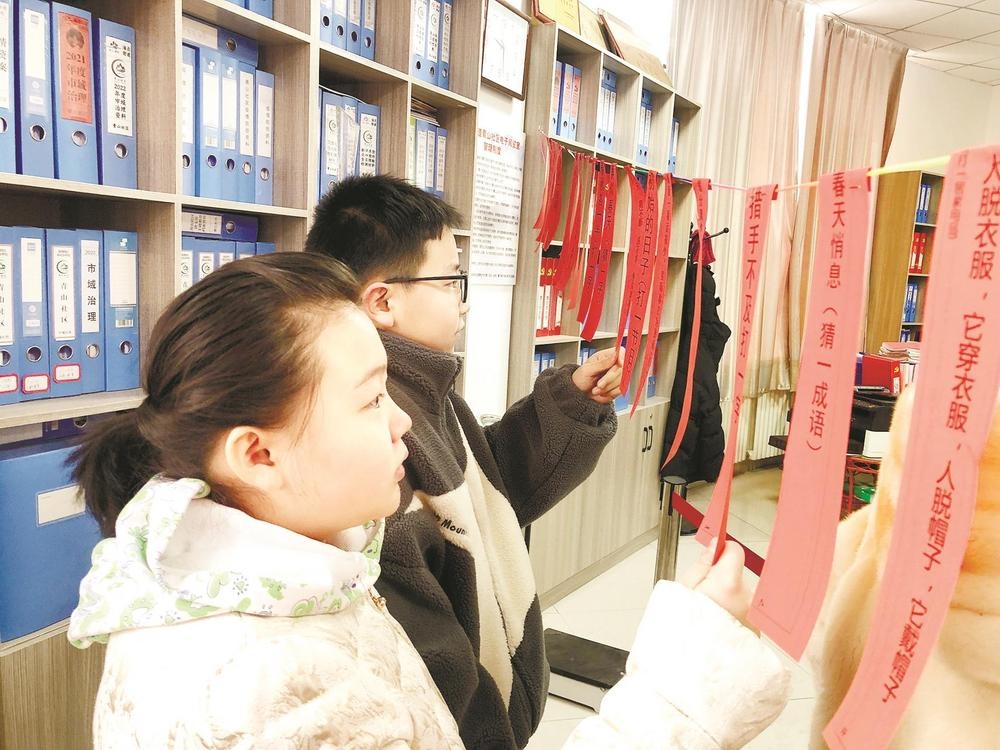 社区举办猜灯谜等元宵节活动。 (曹艺 摄)