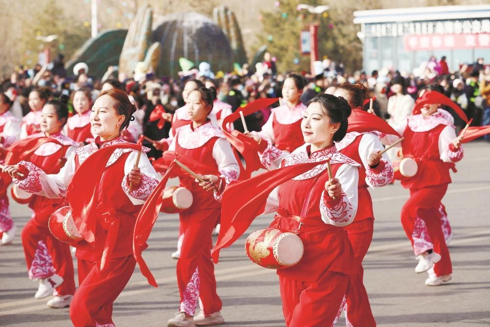 来自海勃湾区各街道办事处的18支队伍惊艳亮相,鼓乐齐鸣,热闹非凡。 (高瑞鹏 摄)